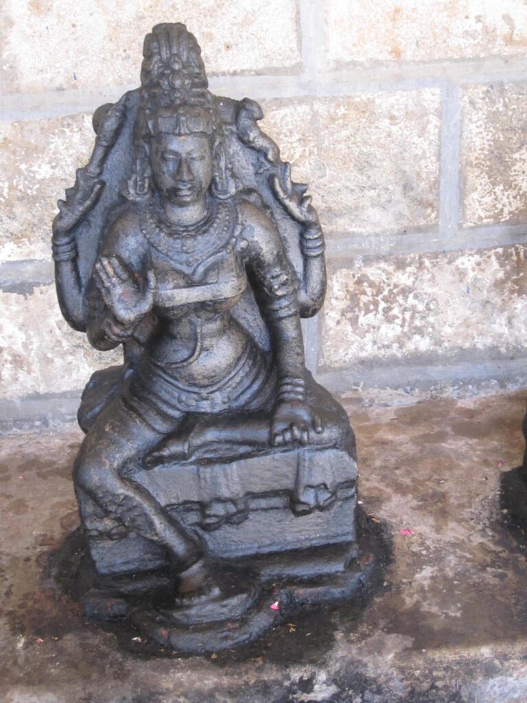 The matrika assemblage of Thirunedungalam is a splendid portrayal, the Gods and Goddesses in poise, different styles of hair dressing and attire, lavishly decked with ornaments are imposing. Chamunda of Thirunedungalam is unique, live human kundala, human head yajnopavita are quite interesting. The attributes of the sculptures in all its facets exhibit the mastery of Chola sculptors.