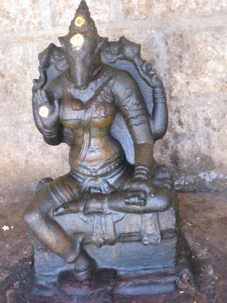 A beautiful assemblage of Saptamatrikas are found in the Nedungalanathar temple at Thirunedungalam in Tiruchirappalli district. Thirunedungalam, glorified by the Saiva saints in their hymns, is a huge two prakara complex with various shrines, mandapas and gopuras. The Goddess Mangalanayaki shrine is in the outer prakara of the complex. The temple is known for its rich inscriptions, the earliest inscription of this complex dates back to Pallava period and inscriptions of Cholas, Pandyas, Vijayanagar and Nayaks also found. It shows the temple had continuous patronization under various succeeding dynasties.